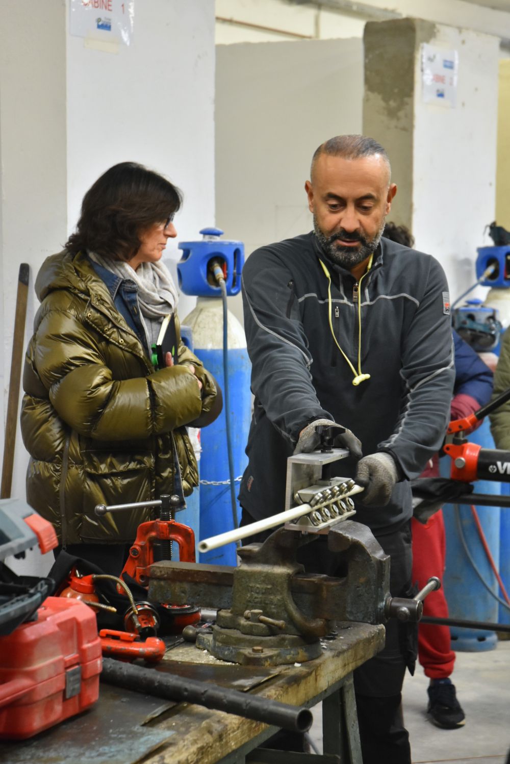 Immersion au coeur des ateliers de l'AFPA Strasbourg pour cette classe de 4ème : salle informatique, atelier éléctricité et atelier plomberie. Les collégien·ne·s ont pu rencontrer les formateurs et stagiaires de l'AFPA, manipuler des outils, tordre des tuyaux, brancher des câbles... Une demi-journée hors des murs de leur classe.