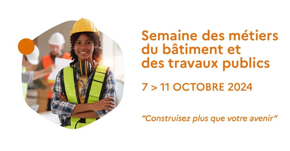 Construisez plus que votre avenir ! Du 7 au 11 octobre 2024, France Travail et ses partenaires organisent la Semaine de métiers du bâtiment et des travaux publics. Venez à la découverte des nombreux métiers de ce secteur et des perspectives d'évolution.