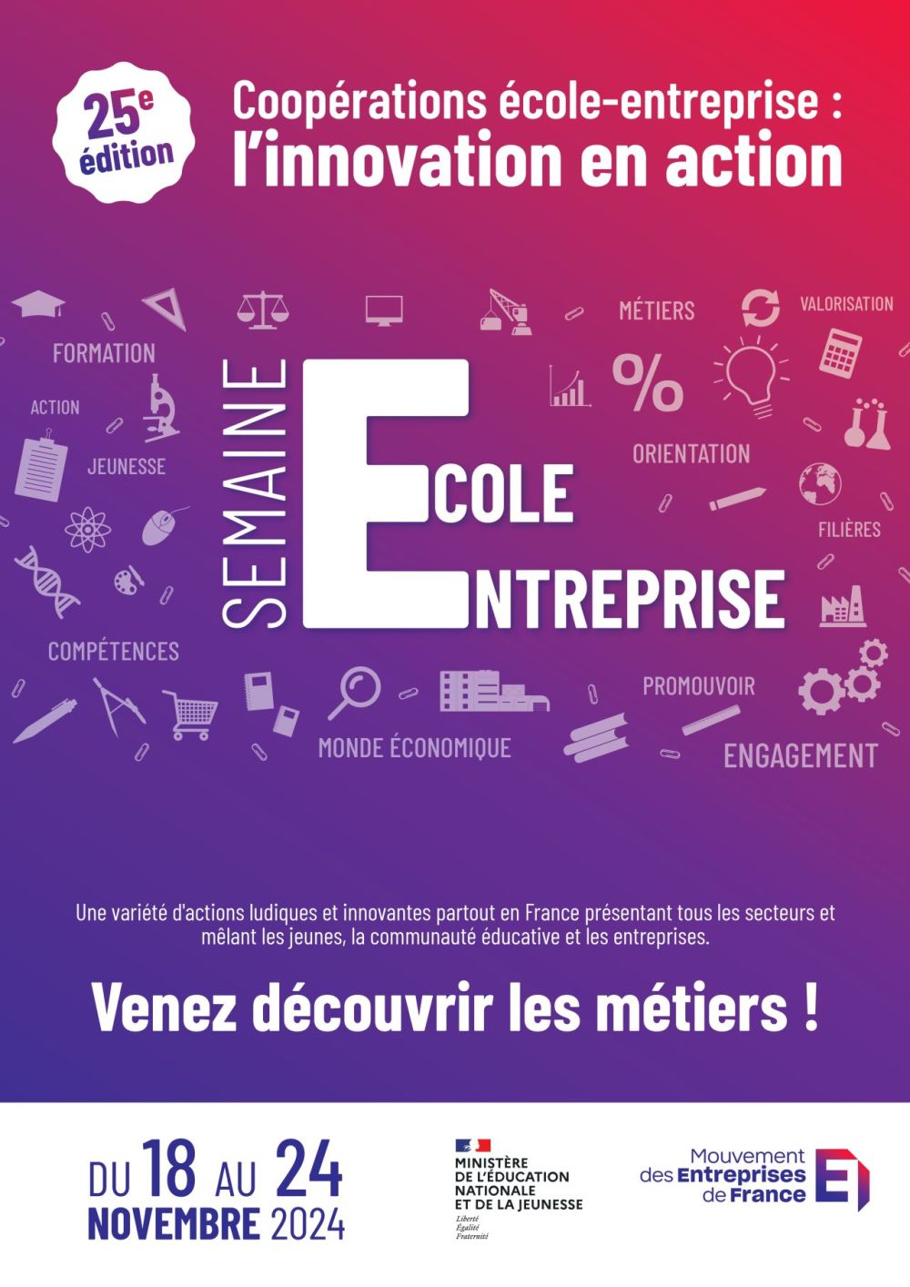Objectif ? Donner envie d’entreprendre, favoriser l’orientation et préparer l’intégration dans la vie active. Depuis 2022, une demi-journée de découverte des métiers est même proposée aux élèves de 5e dans plus de 600 collèges volontaires ! 🔍
